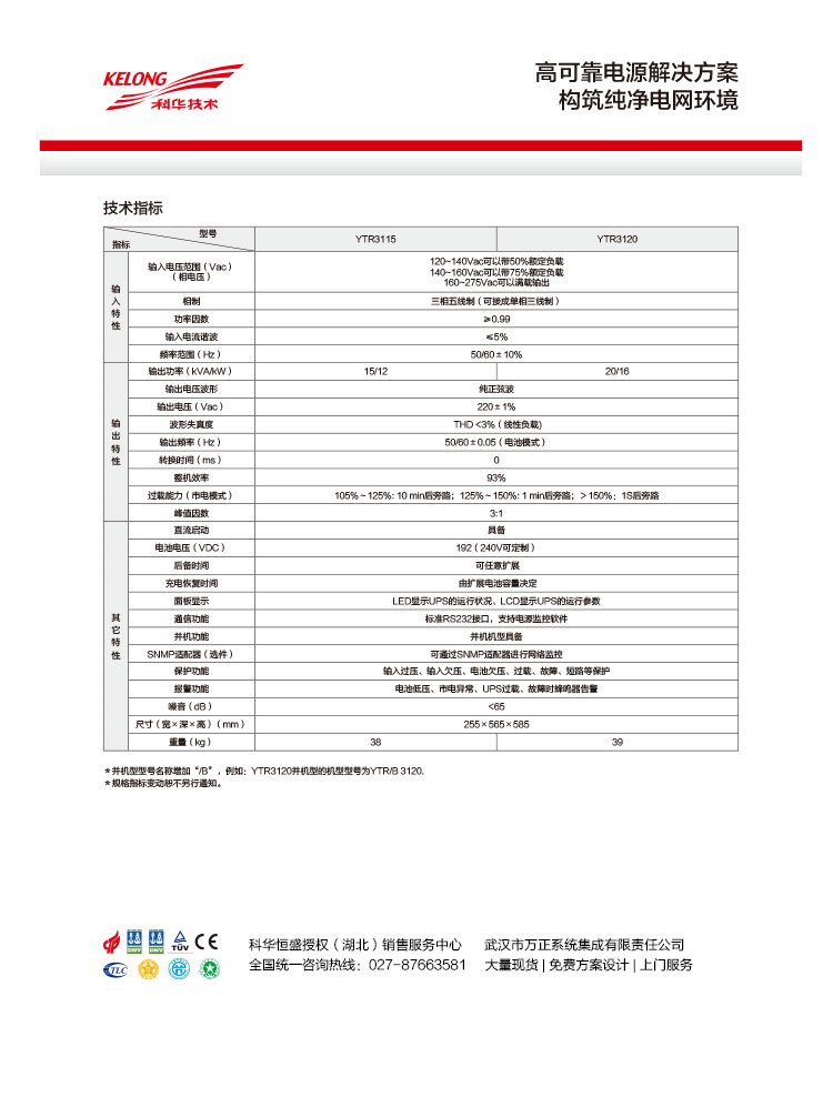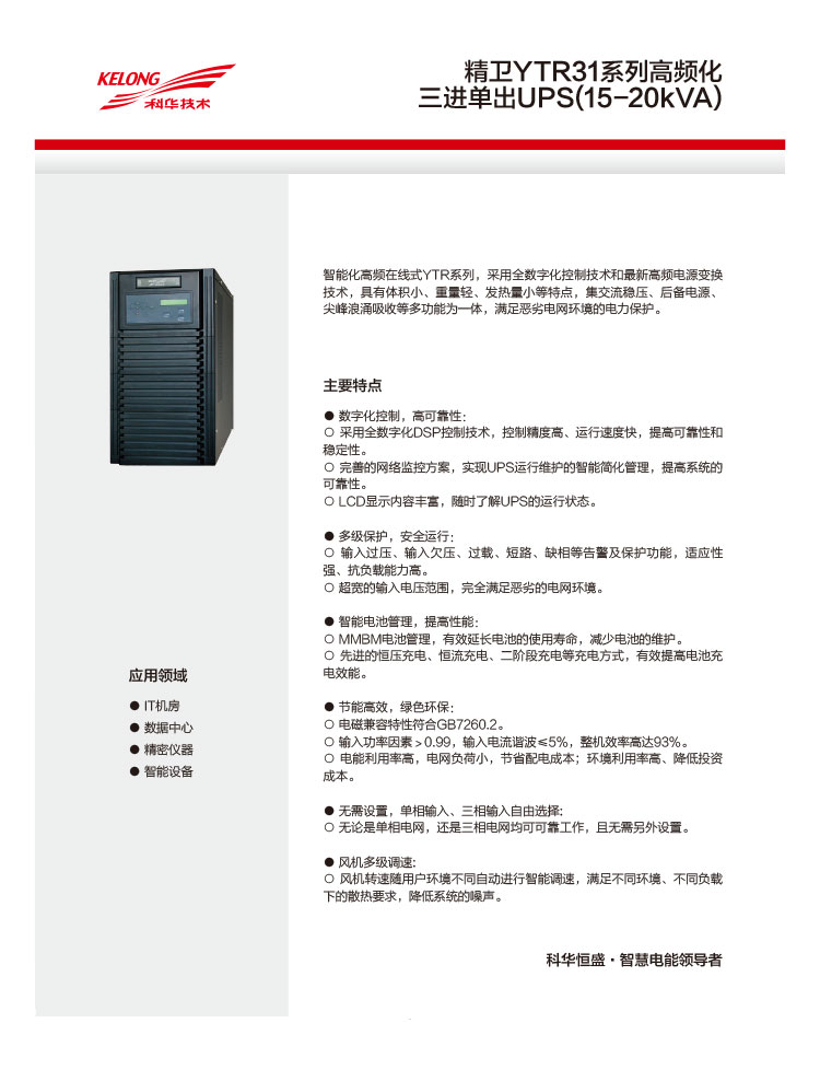 • 產(chǎn)品型號:精衛YTR31系列高頻化三進(jìn)單出UPS(15-20kVA)