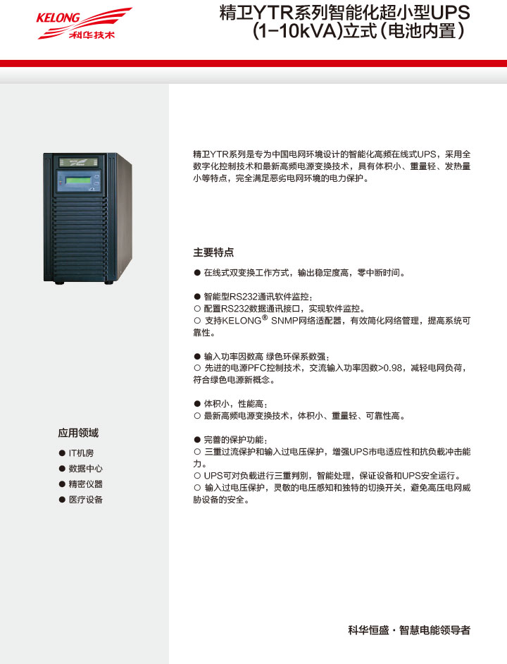 • 產(chǎn)品型號:精衛YTR系列智能化超小型UPS(1-10kVA)立式(電池內置)