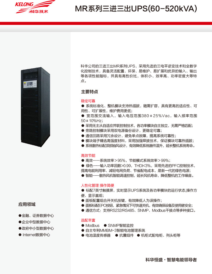 • 產(chǎn)品型號:MR系列三進(jìn)三出UPS(60-520kVA)